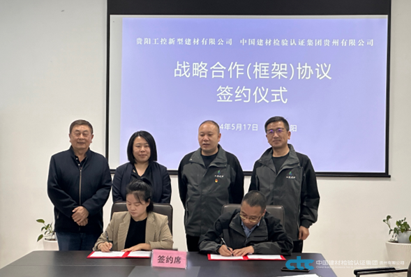 為響應國家號召,助力傳統產業向著高質量發展邁進,中國建材檢驗認證集團貴州有限公司(以下簡稱“貴州公司”)與貴陽工控新型建材有限公司(以下簡稱“工控建材公司”)就共同創建高性能混凝土科技創新聯合體,建立全面的“產、研”戰略合作關系達成共識,并于2024年5月17日上午在工控建材公司舉行戰略合作(框架)協議簽約與揭牌儀式。