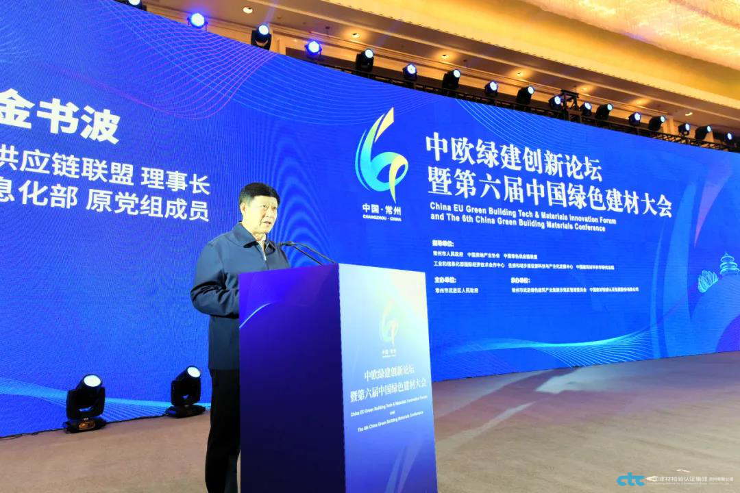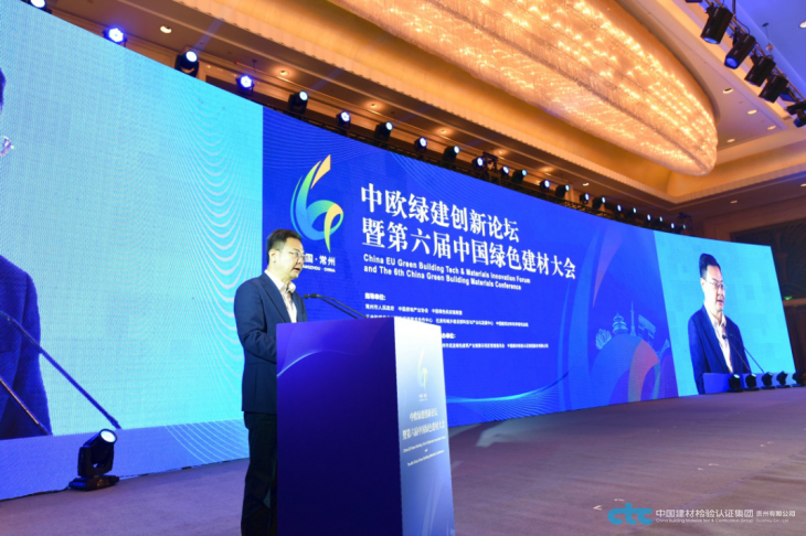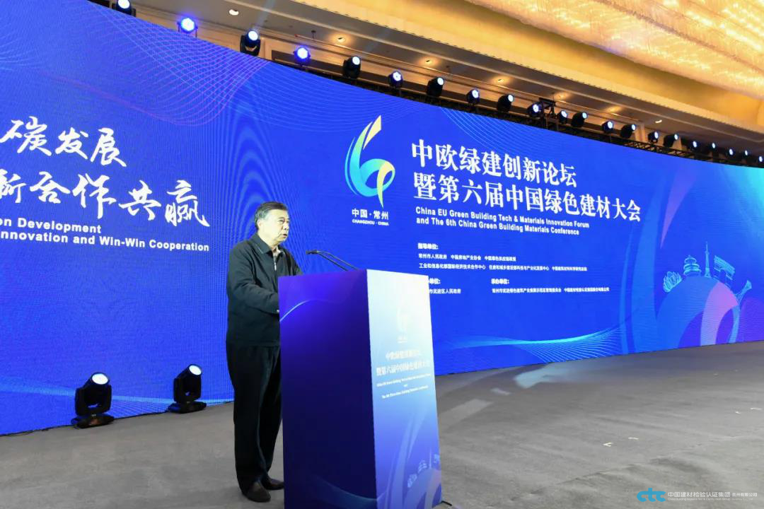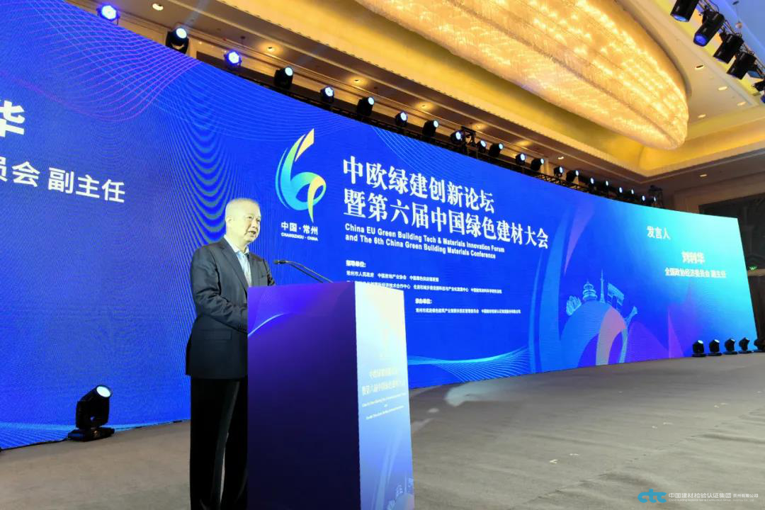 在常州市人民政府、中國房地產業協會、中國綠色供應鏈聯盟、工業和信息化部國際經濟技術合作中心、住房和城鄉建設部科技與產業化發展中心、中國建筑材料科學研究總院的指導下,由常州市武進區人民政府主辦,常州市武進綠色建筑產業集聚示范區、中國建材檢驗認證集團股份有限公司(國檢集團)承辦的“中歐綠建創新論壇暨第六屆中國綠色建材大會”10月14日-15日在武進舉行。活動以“綠色低碳發展、創新合作共贏”為主題,參加活動的領導有:全國政協經濟委員會副主任劉利華,江蘇省政協副主席、黨組副書記閻立,中國綠色供應鏈聯盟理事長、工業和信息化部原黨組成員金書波,十一屆全國政協常委、人口資源環境委員會副主任、建設部原副部長、黨組副書記劉志峰,中國房地產業協會副會長兼秘書長、住房和城鄉建設部原總工程師陳宜明,中國工程院院士、東南大學學術委員會主任、江蘇省建筑科學研究院有限公司董事長繆昌文,工業和信息化部國際經濟技術合作中心主任鄭紅,工業和信息化部國際經濟技術合作中心副主任李毅鍇,住房和城鄉建設部科技與產業化發展中心副主任梁俊強,江蘇省政府外事辦公室副主任楊菁,常州市政協主席白云萍,常州市副市長、武進區委書記李林,武進區政協主席石偉東,武進區委常委、副區長劉志峰。參加活動的外賓有:歐盟駐華使團氣候行動與能源參贊Octavian Stamate,丹麥駐華使館行業參贊Christina Anderskov,奧地利駐華使館技術參贊Max Pfeiler。參加活動的還有中國建材集團科技管理部總經理郅曉,同濟大學中德工程學院院長馮曉,中國建材檢驗認證集團股份有限公司總經理朱連濱,常州工程職業技術學院副院長潘玉琴以及來自國家相關職能部門、行業協會、企業界代表和常州市、武進區相關職能部門400余人相聚武進,共同探討綠色低碳發展,謀求創新合作共贏.