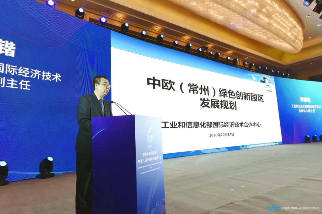 工業和信息化部國際經濟技術合作中心副主任李毅鍇發布《中歐(常州)綠色創新園規劃》
